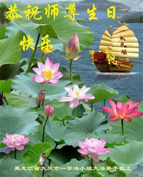 黑龙江大庆让胡路一小区大法弟子恭祝慈悲伟大的师尊生日快乐!