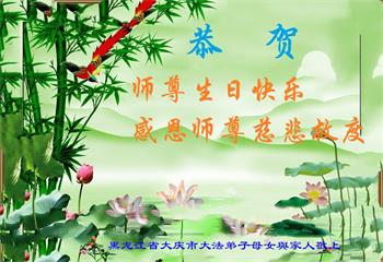 黑龙江大庆一家三位大法弟子恭祝慈悲伟大的师父生日快乐!