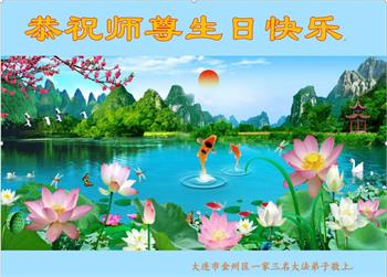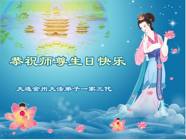 辽宁大连金州大法弟子一家三代恭祝师尊生日快乐!