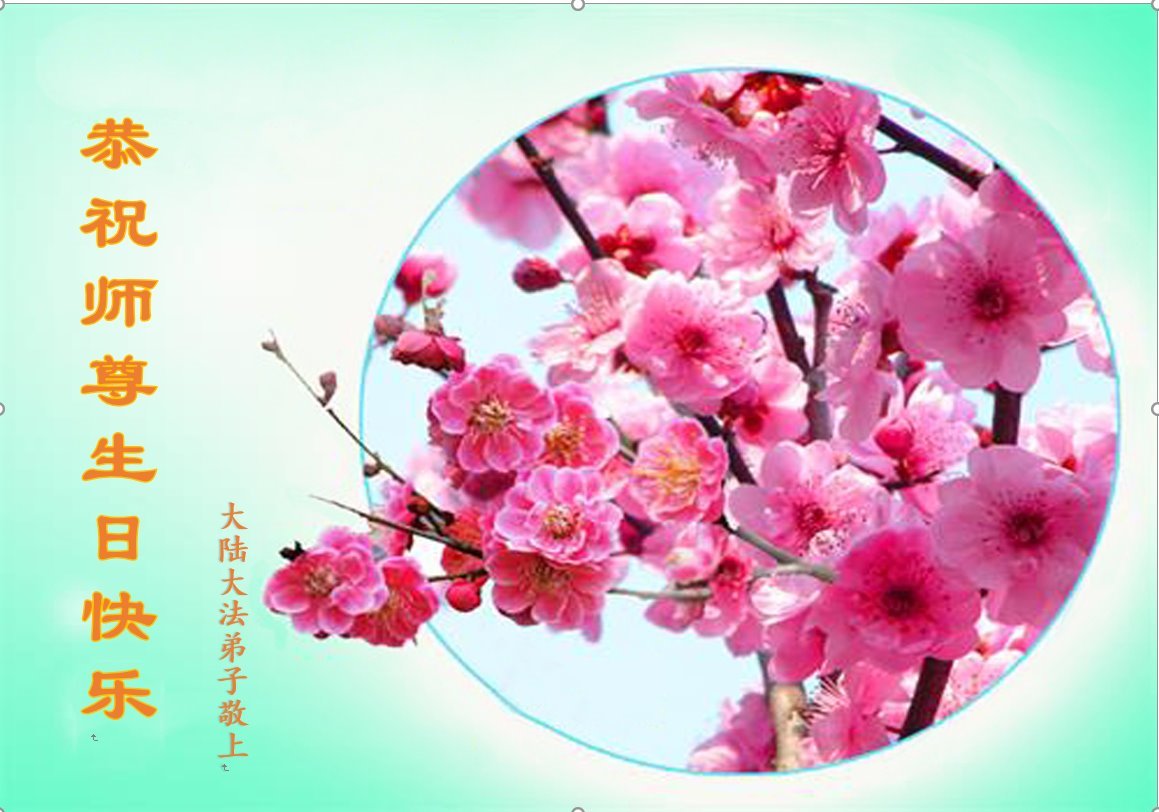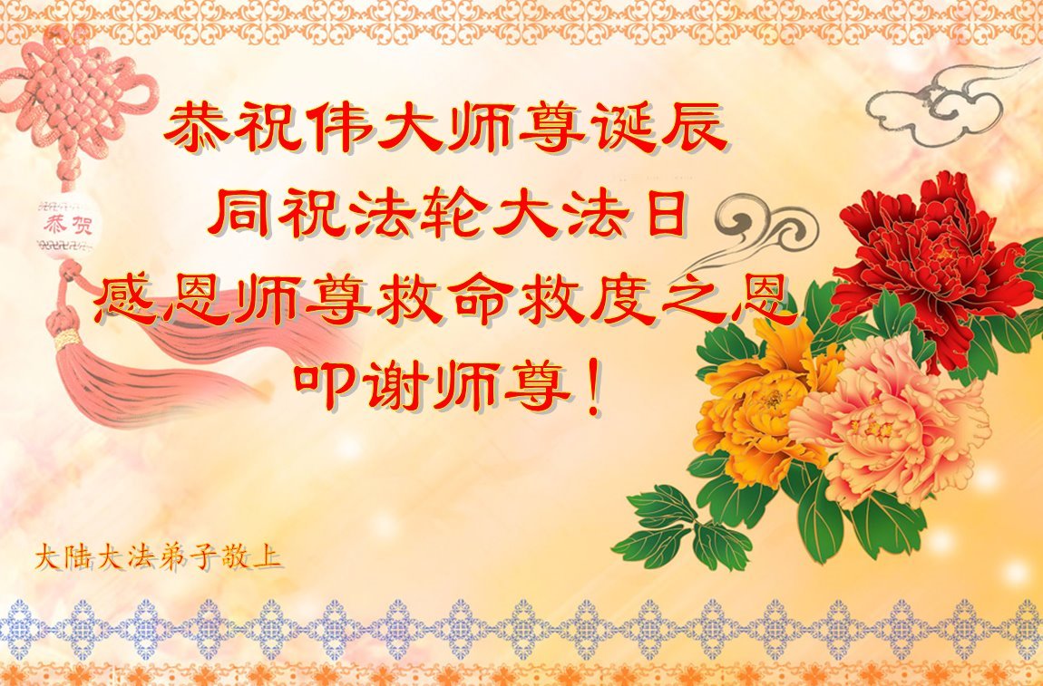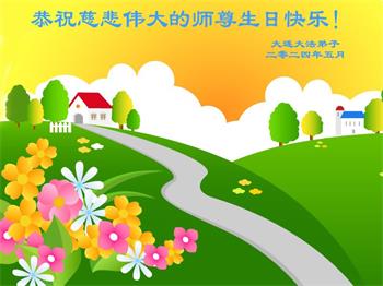 师尊好!我是一九九四年十一月修炼至今已有三十个年头了。回首这三十年来修炼之路,万分感恩师尊救度洪恩!代表婆婆、丈夫、小姑子及儿子向慈悲伟大的师尊问好!恭祝师尊生日快乐! 辽宁大连大法弟子敬上 二零二四年五月七日 辽宁大连大法弟子恭祝师尊生日快乐!