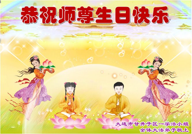 辽宁大连市甘井子区一学法小组全体大法弟子恭祝师尊生日快乐!