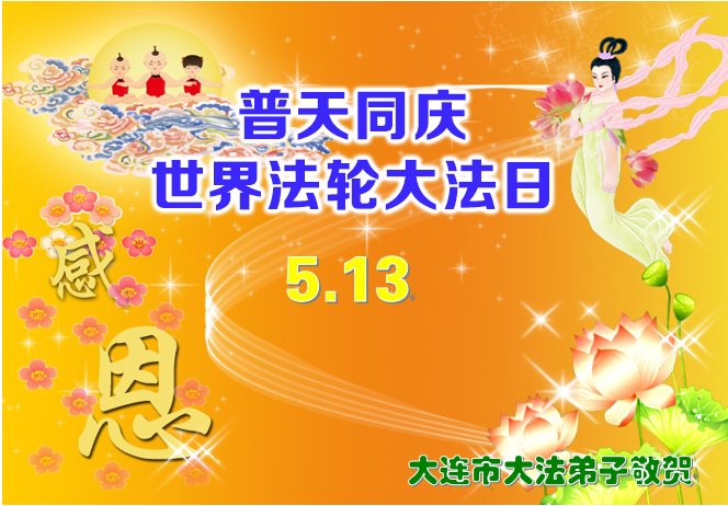 感恩师尊慈悲救度!师尊您辛苦了! 辽宁大连市大法弟子同祝、同庆5.13世界法轮大法日!