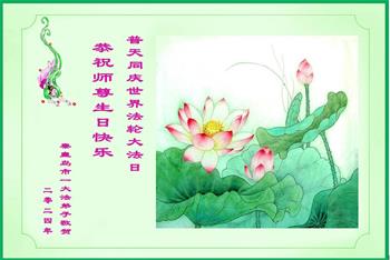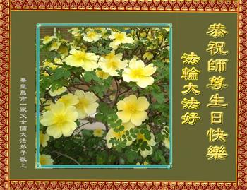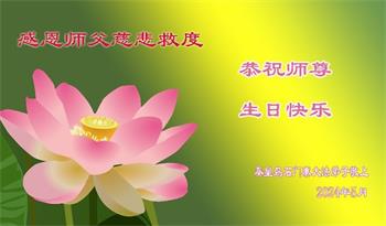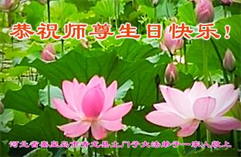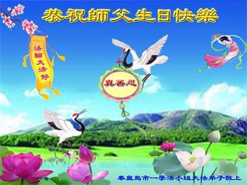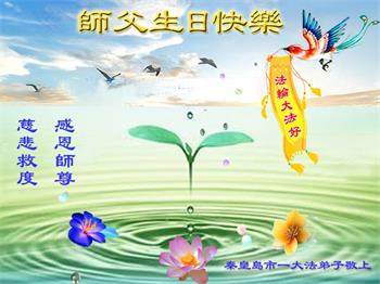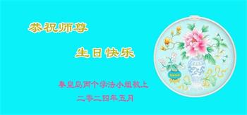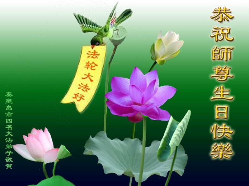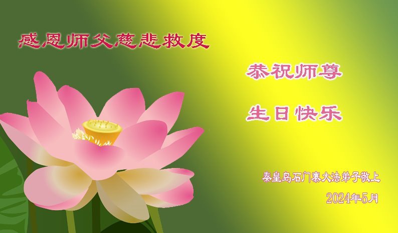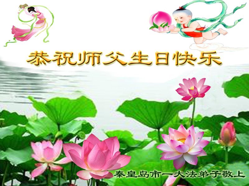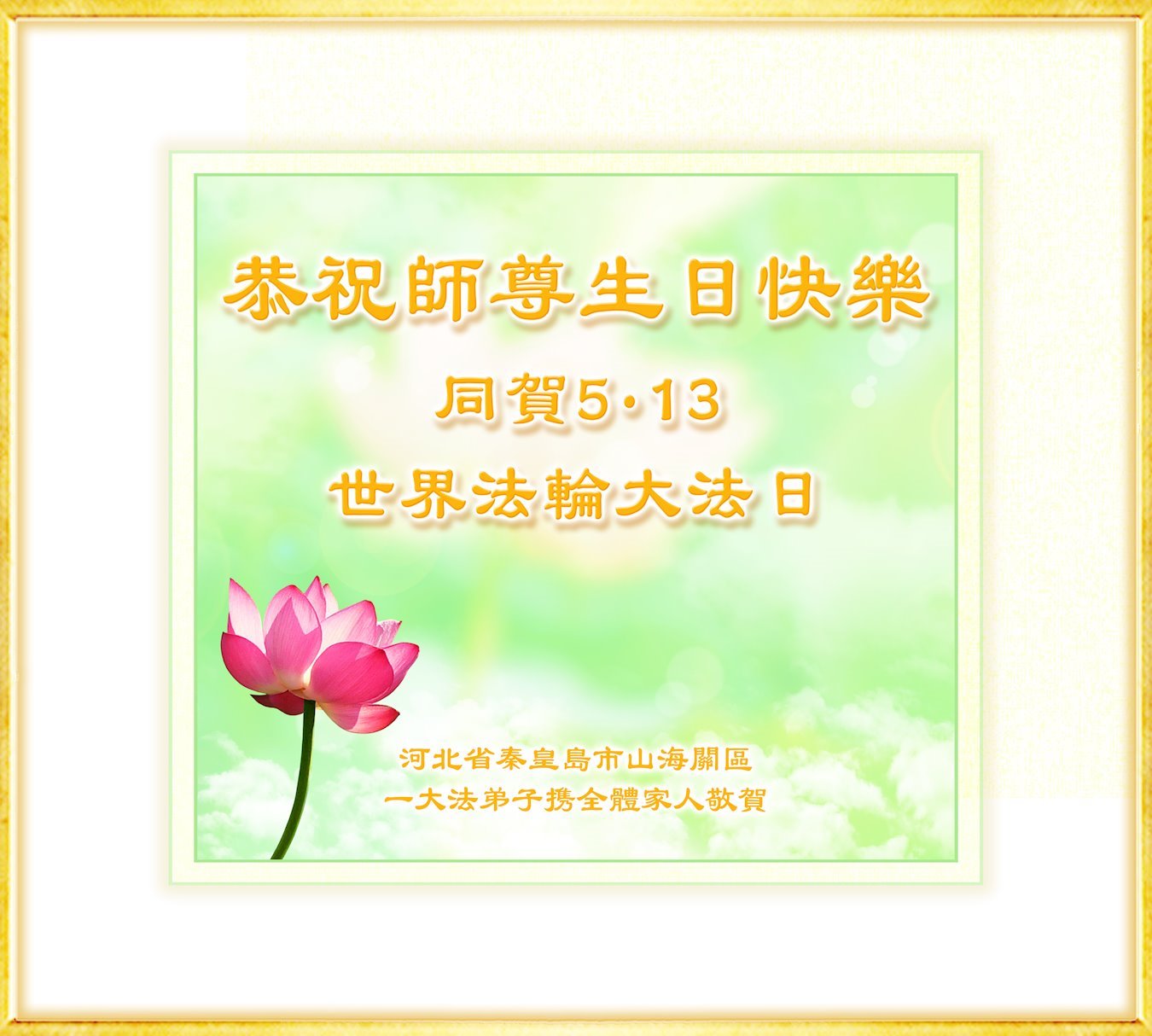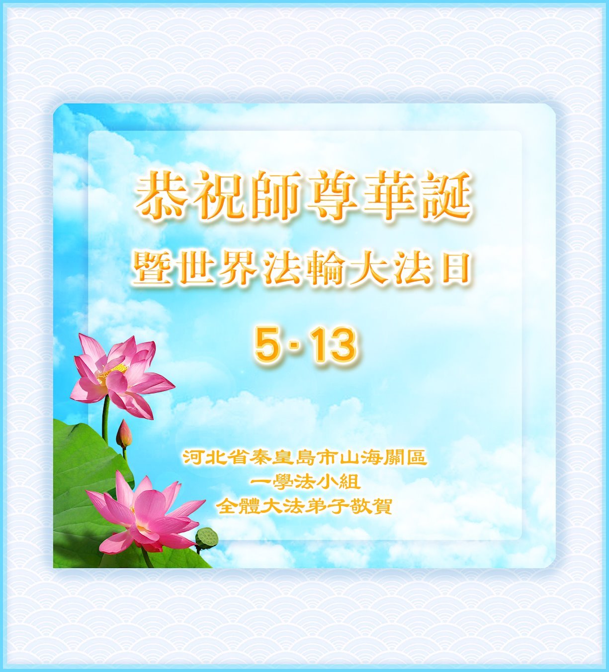 师恩难报!弟子唯有在大法中精進实修,尽自己所能多救人,以报师恩。 河北秦皇岛大法弟子恭祝师父生日快乐!恭贺世界法轮大法日!