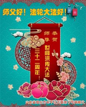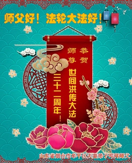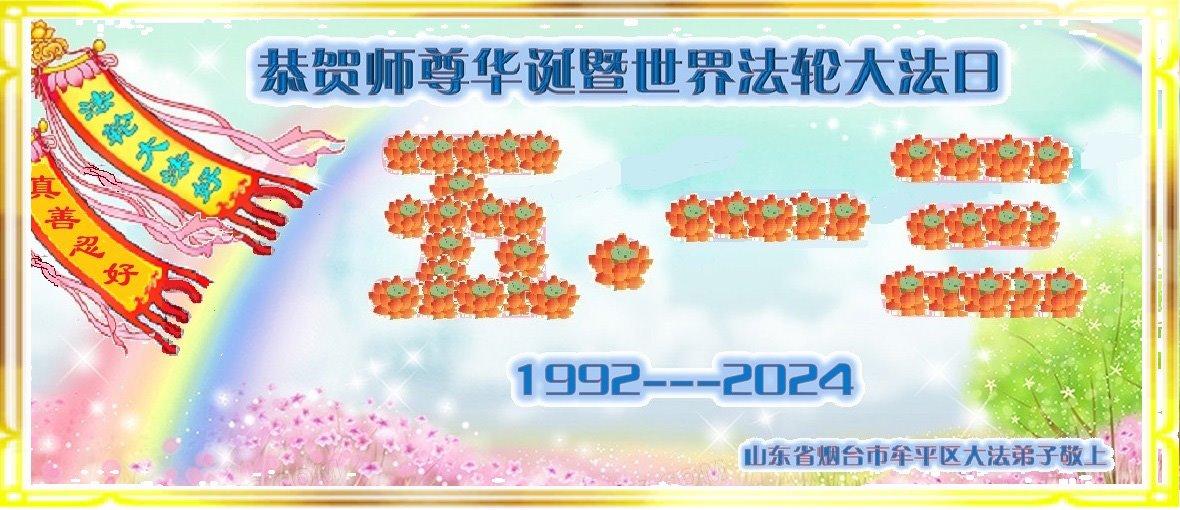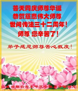 山东省烟台市牟平区大法弟子恭贺师尊华诞暨法轮大法日!