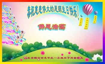 山东省烟台市芝罘区一学法小组全体大法弟子恭祝师尊生日快乐!敬贺第二十五届世界法轮大法日!
