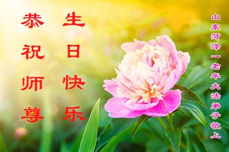 弟子会严格要求自己,精進实修。 山东菏泽一老年大法弟子恭祝师尊生日快乐!