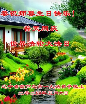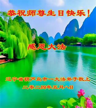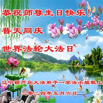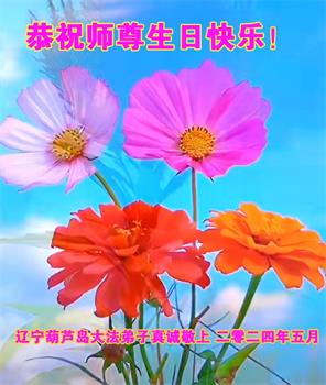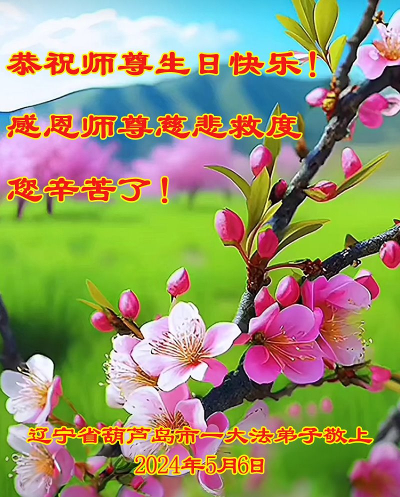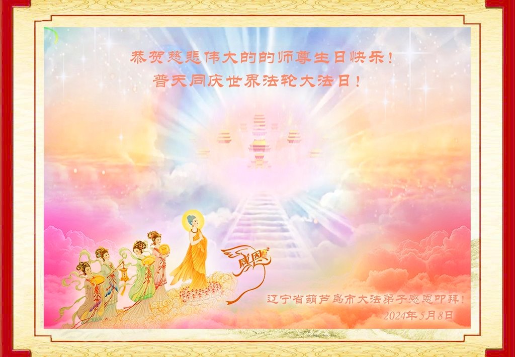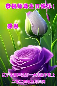 【明慧网二零二四年五月十二日】 辽宁省葫芦岛市全体大法弟子恭祝慈悲伟大的师尊生日快乐!