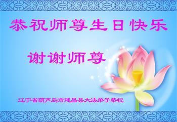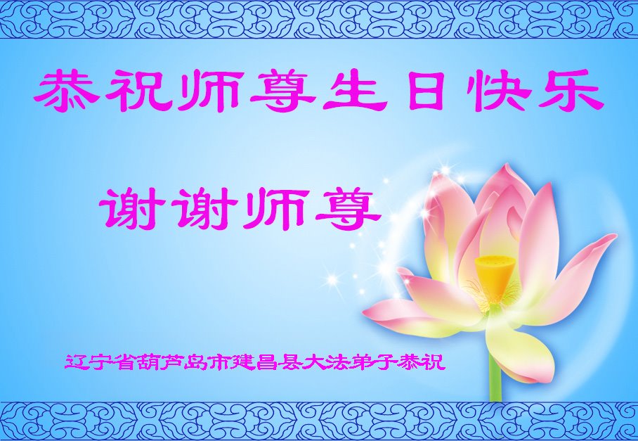 辽宁省葫芦岛市建昌县大法弟子恭祝师尊生日快乐!同庆世界法轮大法日!