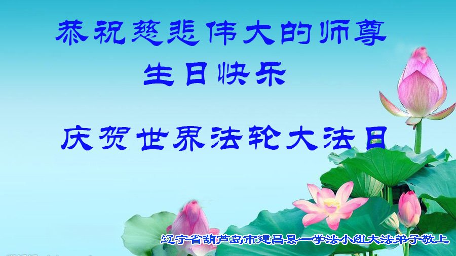辽宁省葫芦岛市建昌县一学法小组大法弟子恭祝慈悲伟大的师尊生日快乐!庆贺世界法轮大法日!