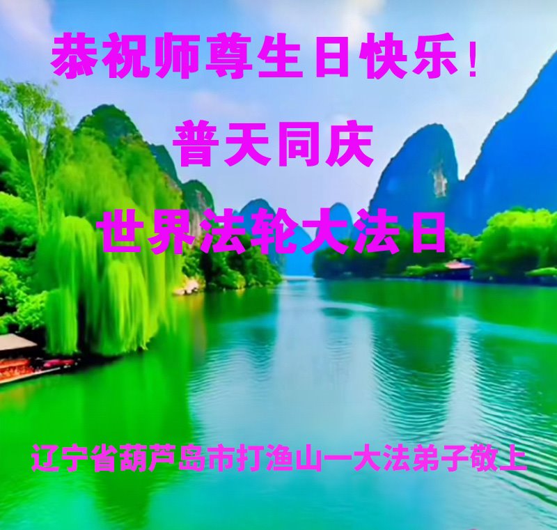 辽宁葫芦岛大法弟子归真恭祝师尊生日快乐!普天同庆世界法轮大法日
