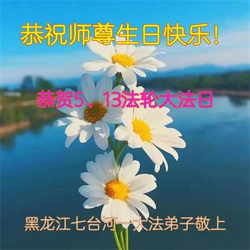 恭贺法轮大法日!恭祝师父生日快乐! 黑龙江省七台河市大法弟子敬上 黑龙江七台河全体大法弟子恭贺世界法轮大法日!