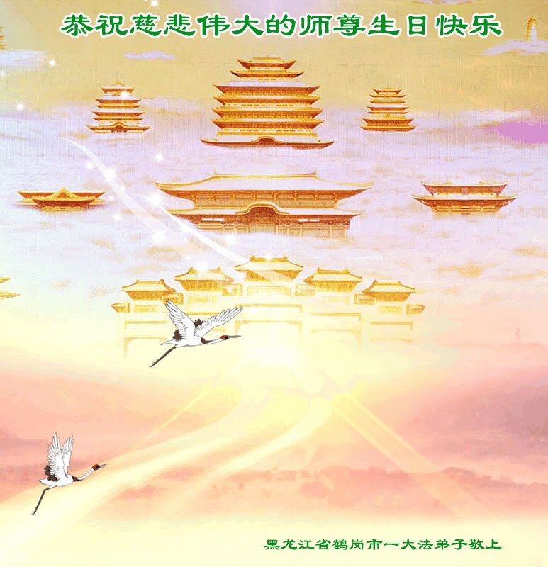 恭祝伟大师尊生日快乐!恭贺法轮大法洪传三十二周年,谢谢师尊!师尊您辛苦了!感谢师父的慈悲救度,感恩师尊保护,弟子叩拜师尊慈悲圣恩!弟子会珍惜最后的修炼机会,做正念正行的大法弟子,谢谢师尊!谢谢师尊! 黑龙江省七台河市大法弟子敬上 黑龙江七台河大法弟子恭贺世界法轮大法日!