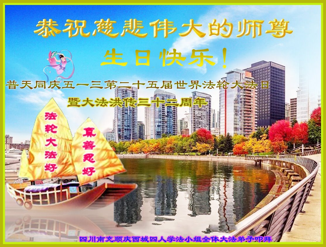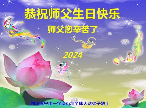 四川遂宁市一学法小组大法弟子恭祝师父生日快乐!