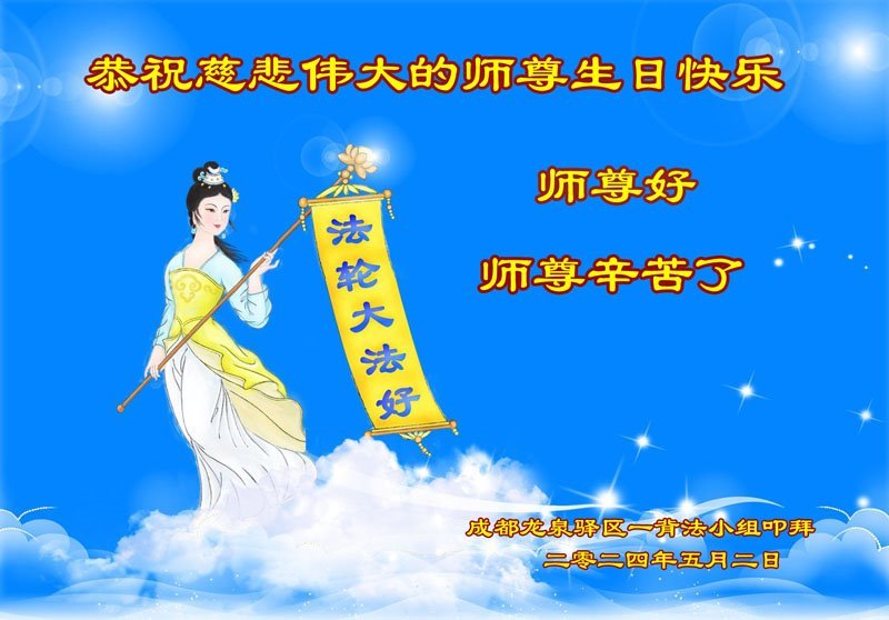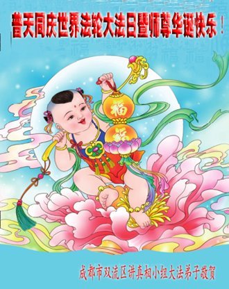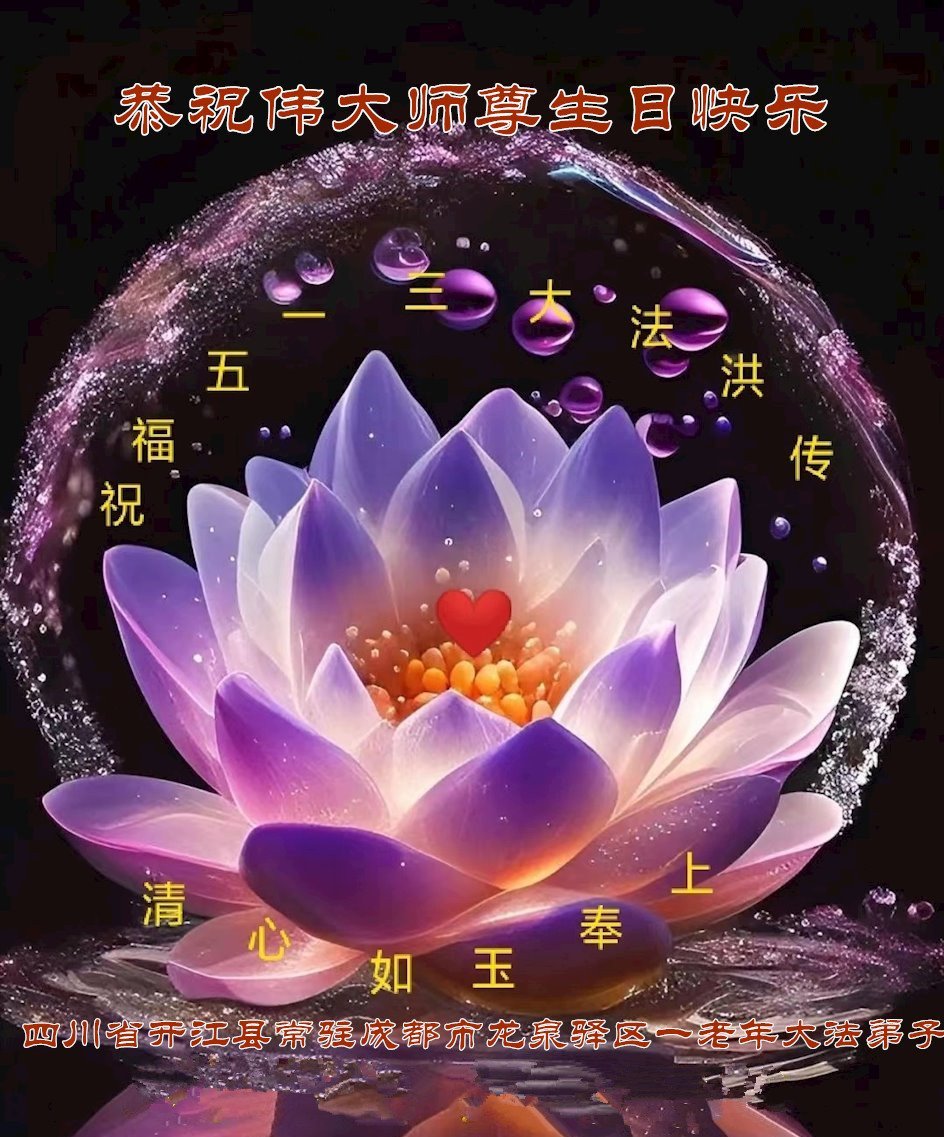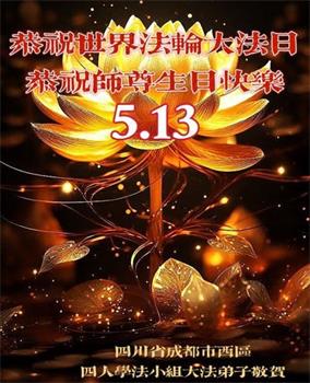 四川省成都一大法弟子恭祝慈悲伟大的师尊生日快乐!恭贺世界法轮大法日!