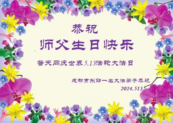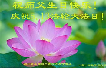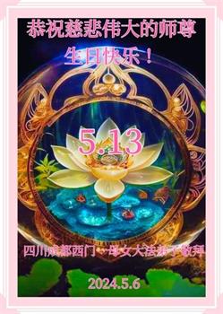 【明慧网二零二四年五月十二日】 四川省成都彭州市一大法弟子恭祝慈悲伟大的师尊生日快乐!