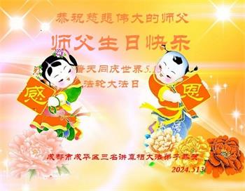 四川省成都市成华区三名讲真相大法弟子恭祝师父生日快乐!