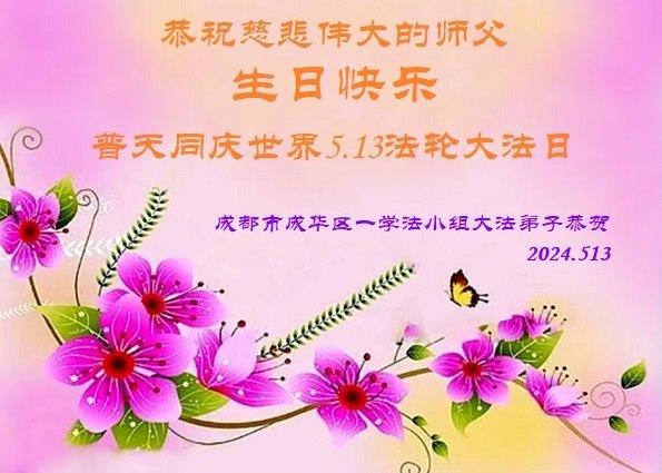 二零二四年五月六日 四川省成都市成华区一学法小组大法弟子恭祝师父生日快乐!