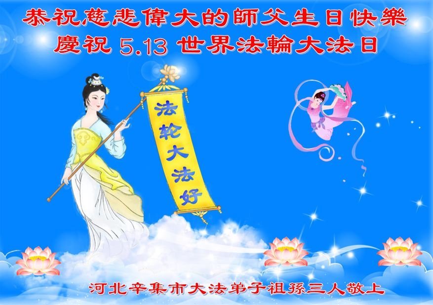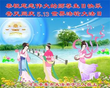 河北省石家庄两名大法弟子恭祝师尊生日快乐!庆祝世界法轮大法日!