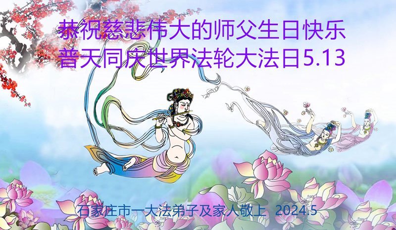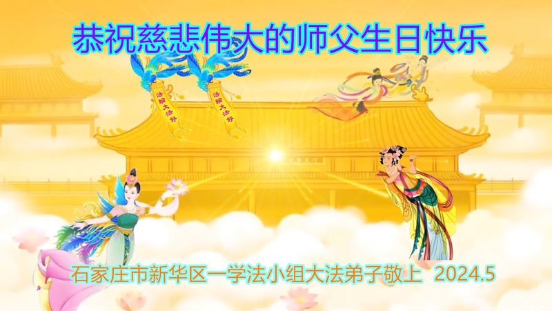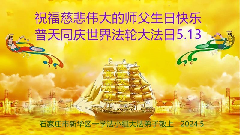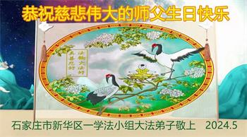 【明慧网二零二四年五月十二日】 河北石家庄市新华区一学法小组大法弟子恭祝师尊生日快乐!
