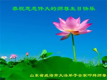 山东省威海市大法弟子全家恭祝师尊生日快乐!