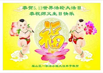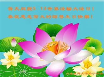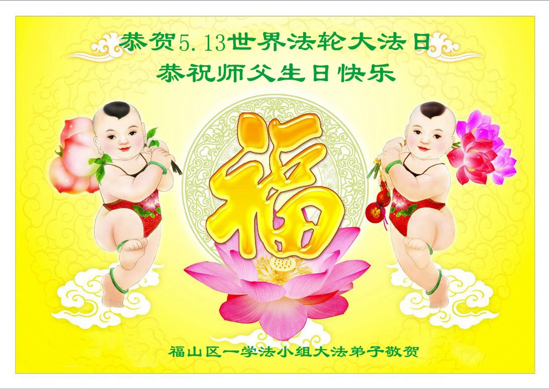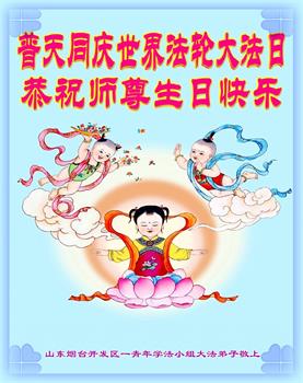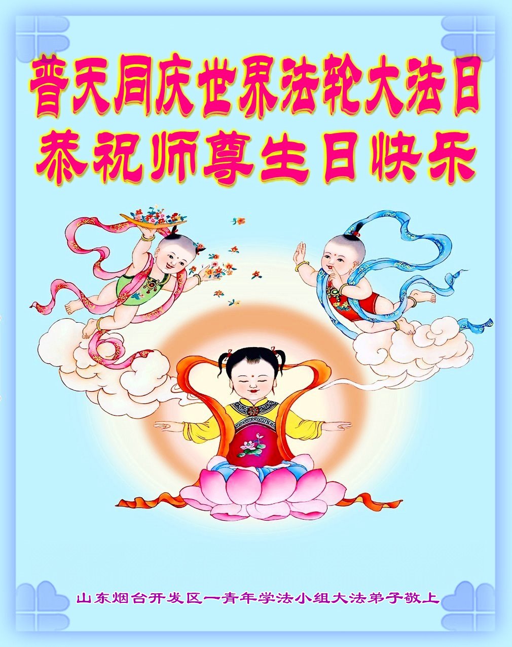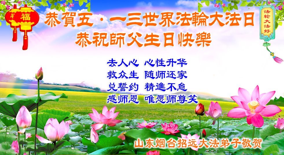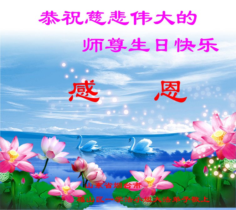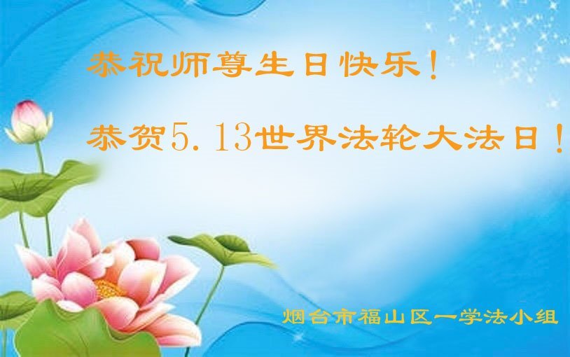 山东省烟台市福山区一学法小组大法弟子恭祝师父生日快乐!恭贺5.13世界法轮大法日!