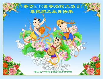 山东省烟台市福山区一学法小组大法弟子恭贺5.13世界法轮大法日!