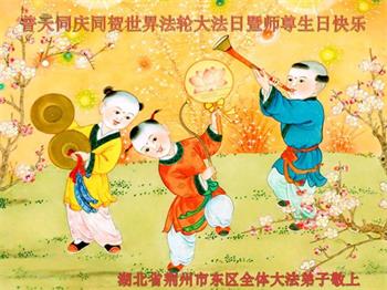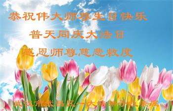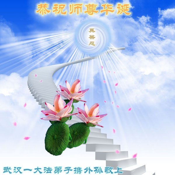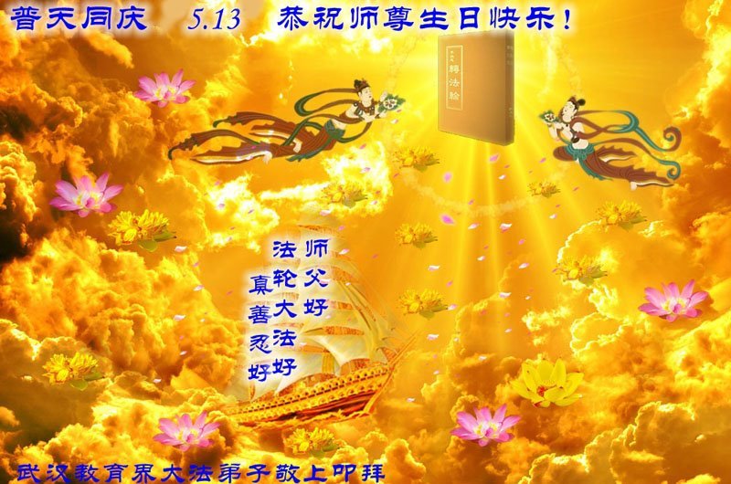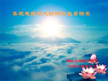 湖北大法弟子恭祝慈悲伟大的师父生日快乐!