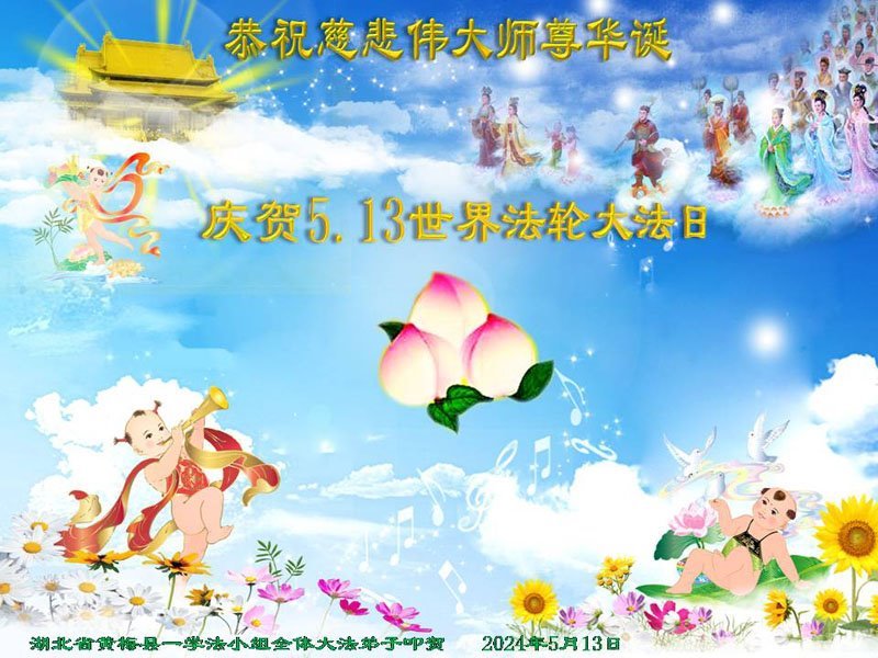 湖北省黄冈市黄梅县一学法小组全体大法弟子恭祝师尊华诞暨庆贺世界法轮大法日!