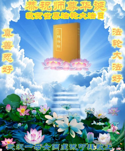 湖北省武汉一母女大法弟子恭祝师尊华诞!敬贺世界法轮大法日!无限感恩师尊慈悲救度洪恩!