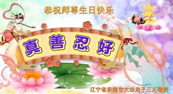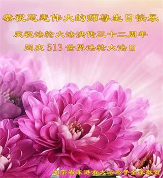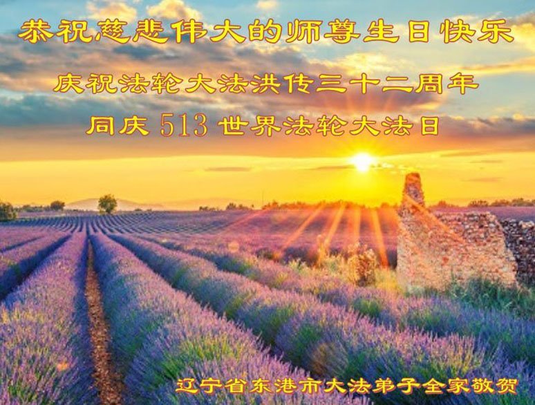 辽宁省丹东市东港市大法弟子恭祝慈悲伟大的师尊生日快乐!敬贺世界法轮大法日!