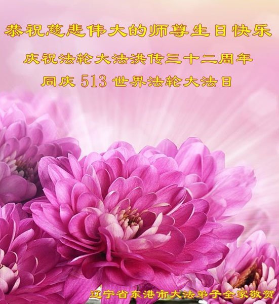 辽宁省丹东市东港市大法弟子全家敬贺法轮大法日!恭祝慈悲伟大的师尊生日快乐!
