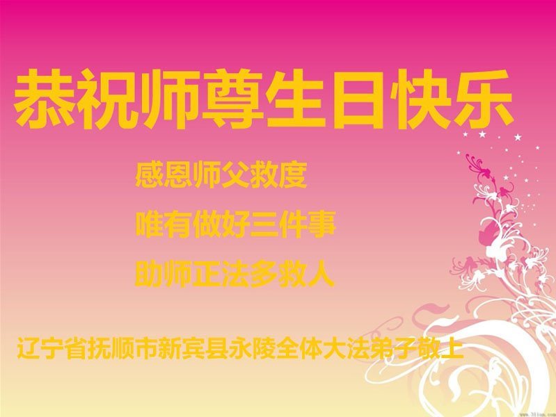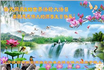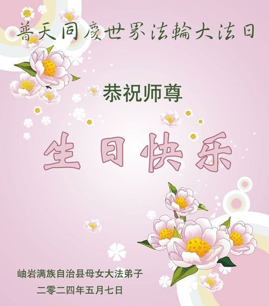 【明慧网二零二四年五月十二日】 辽宁抚顺市新宾满族自治县一大法弟子恭祝慈悲伟大的师尊生日快乐!