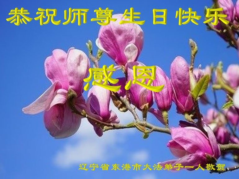 辽宁省丹东市东港市一大法弟子恭祝慈悲伟大的师尊生日快乐!恭贺世界法轮大法日!
