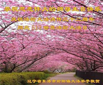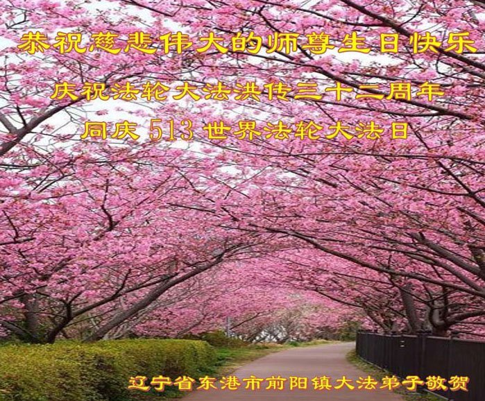 辽宁省丹东市东港市前阳镇大法弟子恭祝慈悲伟大的师尊生日快乐!敬贺世界法轮大法日!