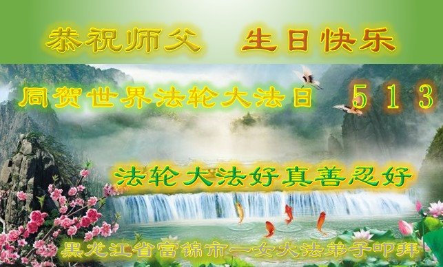 黑龙江省佳木斯市富锦市一女大法弟子恭祝师尊生日快乐!