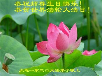 恭祝慈悲伟大的师尊生日快乐!谢谢师尊救度!弟子一定多学法、学好法,让师尊欣慰。 辽宁省大连一家三位大法弟子恭祝师尊生日快乐!恭贺世界法轮大法日!