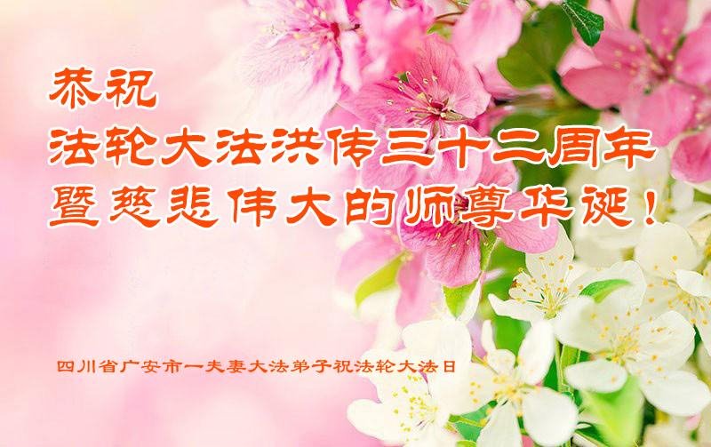 四川省广安市一夫妻大法弟子恭贺世界法轮大法日暨师尊华诞!