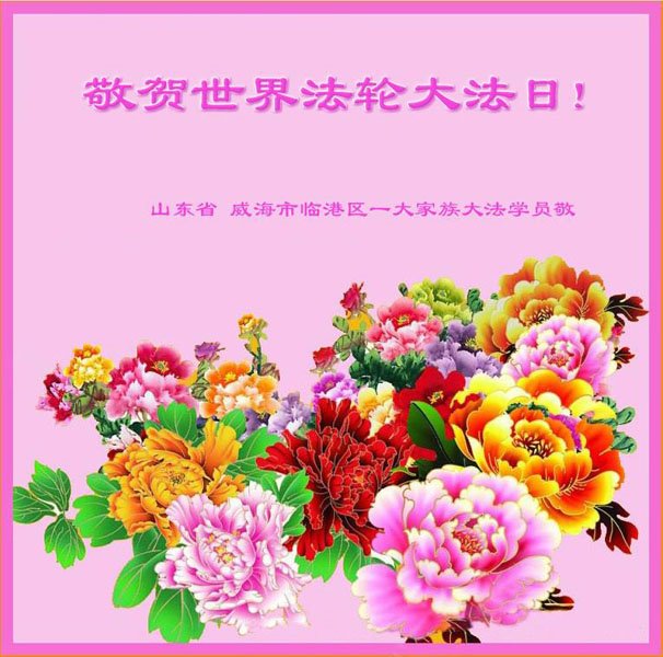 弟子在今后的修炼中,要多学法,学好法,做好三件事,跟师父回家。 山东省威海市临港区一大家族大法弟子恭贺世界法轮大法日!