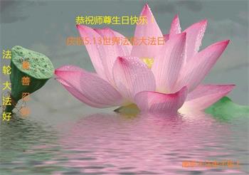 师父辛苦了! 弟子全家恭祝师父生日快乐!感恩师父的慈悲保护,让我在红尘中没有迷失;感恩师父的慈悲加持,让我闯过了一关关,一难难。弟子一定珍惜这万古机缘,正念正行勇猛前行。 江苏连云港东海一大法弟子敬祝师尊生日快乐!恭贺世界法轮大法日!