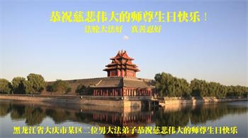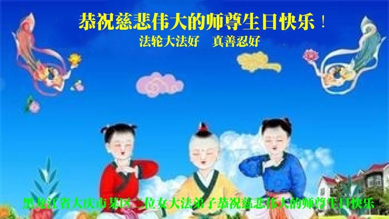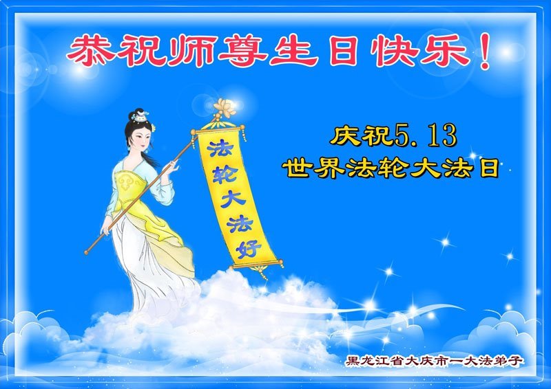 黑龙江大庆一大法弟子恭祝师尊生日快乐!庆祝世界法轮大法日!