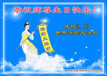 黑龙江省大庆市大法弟子恭祝师尊生日快乐!