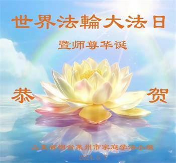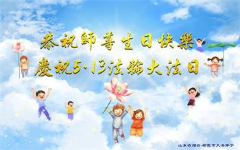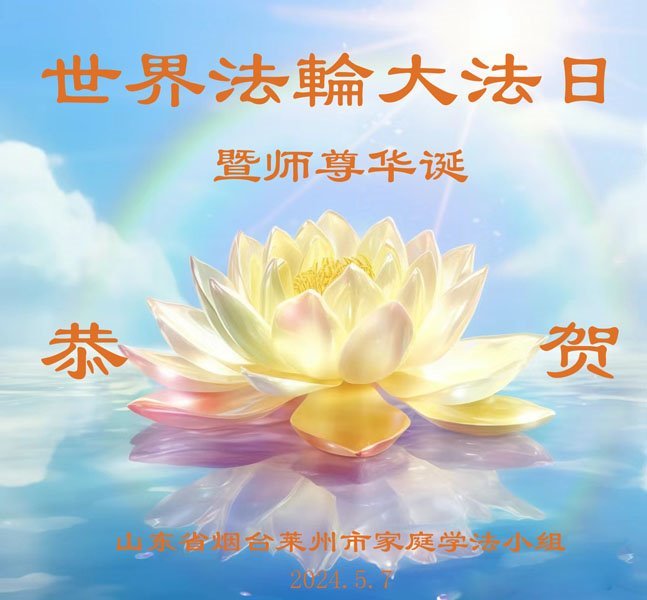 山东省烟台市一家大法弟子敬贺法轮大法日!