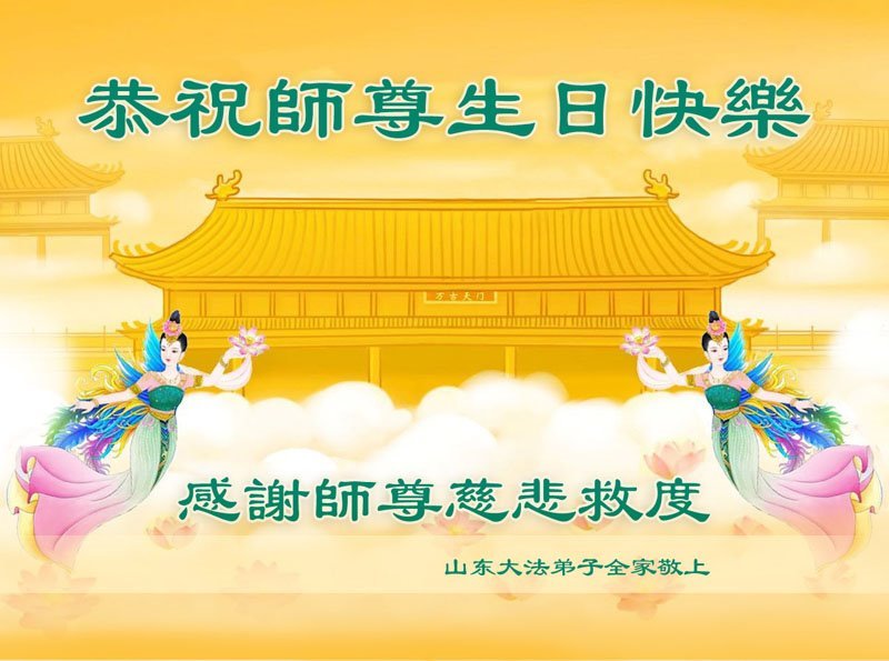 山东省东营市一大法弟子全家恭祝师尊生日快乐!