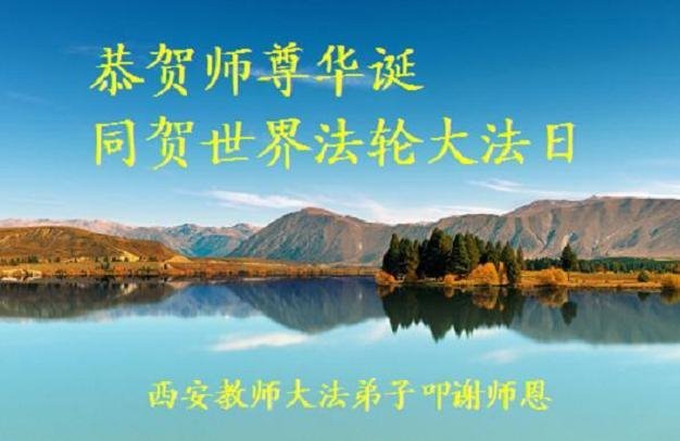 陕西省西安教师大法弟子恭贺师尊华诞!同贺世界法轮大法日!