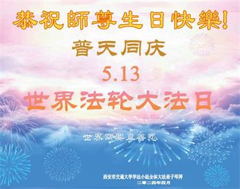 【明慧网二零二四年五月十三日】 陕西省西安市交通大学学法小组全体大法弟子恭祝师尊生日快乐!