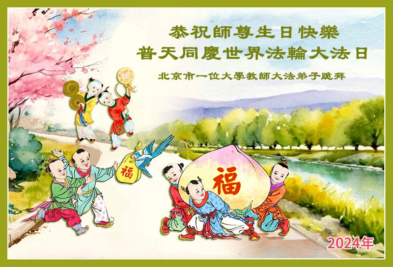 恭祝慈悲伟大的师尊生日快乐!普天同庆同贺同祝5.13世界法轮大法日! 北京市一个大学教师大法弟子敬上 北京师范大学学法小组大法弟子恭祝慈悲伟大的师尊生日快乐!