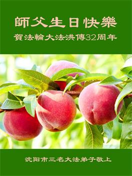 辽宁沈阳市三名大法弟子恭祝师父生日快乐!恭贺世界法轮大法日!