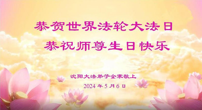 【明慧网二零二四年五月十三日】 辽宁省沈阳市大法弟子全家敬贺法轮大法日!恭祝师尊生日快乐!