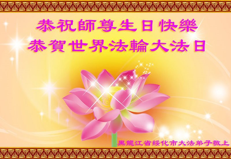 今后弟子一定努力精進,多去执着,让师父少操心。 黑龙江省绥化市大法弟子恭祝师尊生日快乐!恭贺世界法轮大法日!