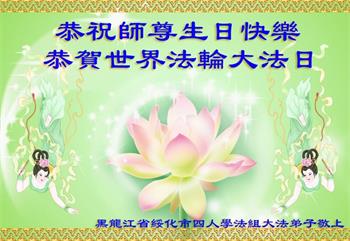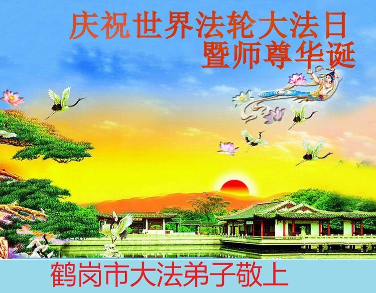 黑龙江省鹤岗一学法小组大法弟子敬贺法轮大法日!恭祝师父生日快乐!